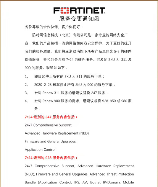>Fortinet服务变更通知函