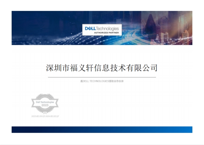 在2023年2月4日,DELL EMC经过2022年度的技术评估,考试、认证,将优质的合作伙伴深圳福义轩信息授权为DELL EMC 2023年精英合作伙伴。