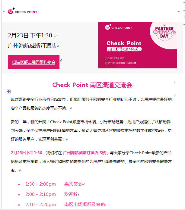 Check Point 广州2月23日南区渠道交流会 诚邀您的参与!