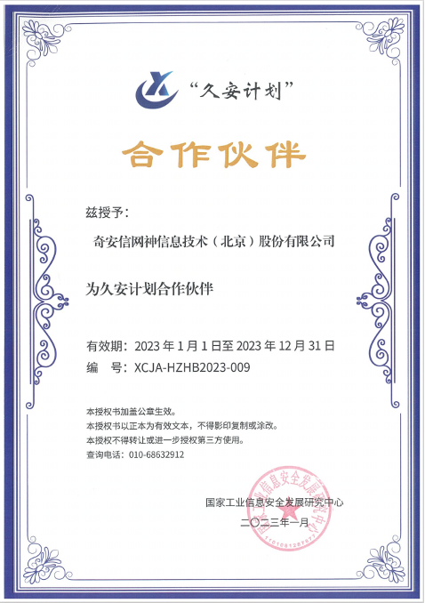 凭借在信创安全领域的技术实力和全面布局, 奇安信 集团作为首批合作伙伴加入“久安计划”。