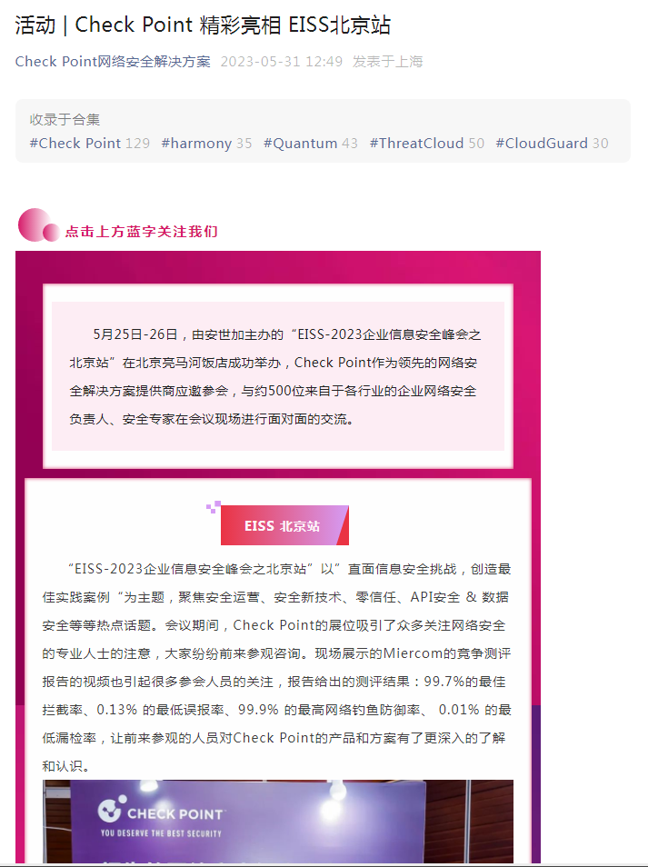 >活动 | Check Point 精彩亮相 EISS北京站