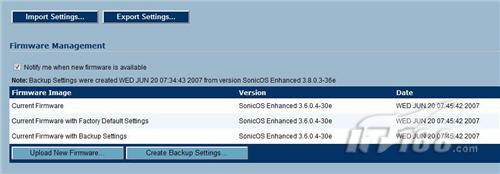 我使用了SonicWALL网站上提供的固件程序。TZ 190具有一个非常有用的固件升级菜单,让你可以轻松上传一个新的固件版本,重启之前的加载选项有三个:当前固件;默认配置的固件,以及使用备份设置的当前固件。这个功能非常有用,可以让管理员在更新固件后能够迅速恢复此前的配置。我选择了使用默认设置的当前固件设置选项,让设备从一个干净的状态下启动。