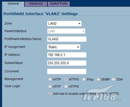在SonicWALL TZ 190中,通过在LAN的8个端口上实现PortShield,它可以最多支持八个VLAN。默认情况下,这八个端口都在一个VLAN中。通过将端口划分到不同VLAN中,可以有效减少广播。