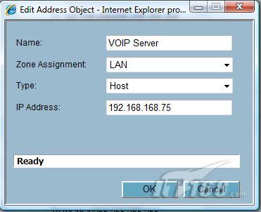 地址对象(Address Objects)对于网管们来说也是一个非常有用的配置工具,可以让你命名网络上的一些关键的设备,然后在SoniWALL OS的下拉配置列表中去选择它们。在下图的示例中,我创建了一个名为VOIP Server的地址对象,可以更直观的修改规则的配置。
