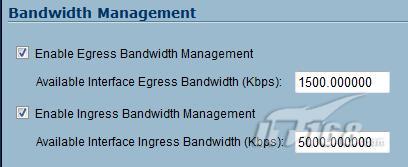 TZ 190还支持为不同的通信类型分配带宽,即支持QoS。它可以确保敏感的通信数据类型得到足够的带宽,例如VOIP等。首先是定为WAN接口的带宽,如下图。